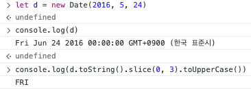 특정 년도, 월, 일을 날짜로 구현하면 요일부터 월, 일, 년도, 시간이 나오는데 이를 문자열로 바꿨을 때 0번째 인덱스부터 2번째 인덱스까지가 요일을 나타낸다.
