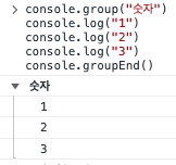 group의 괄호 안에 적어주는 대로 groupEnd 까지 그룹이 형성된다.