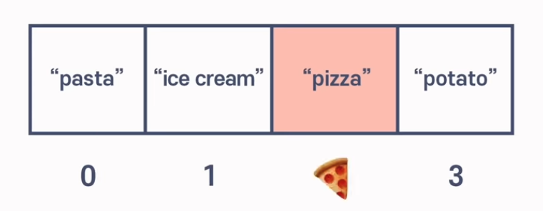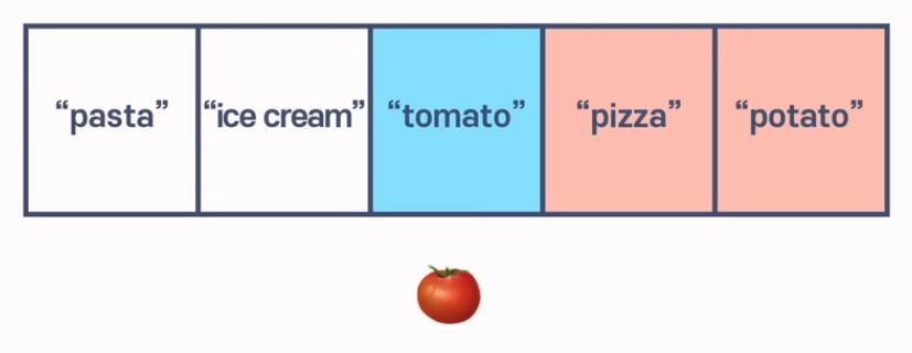 이 때 운 좋게 0번 인덱스에 피자가 있다면 바로 찾지만, 맨 끝에 있을 때도 있고 아예 없을 때도 있다.