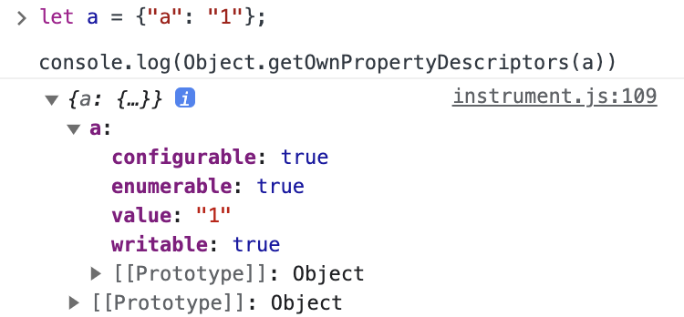 이 엑세스 디스크립터는 게터와 세터 속성으로 구성되는데, 콘솔에 찍어보면 위랑 비슷하게 나온다.
