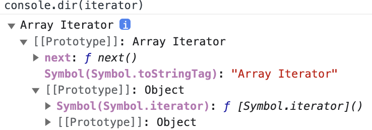 iterator를 콘솔에 찍어보면 next()가 있고, 그렇기 때문에 해당 메서드를 쓸 수 있다는 걸 알 수 있다.