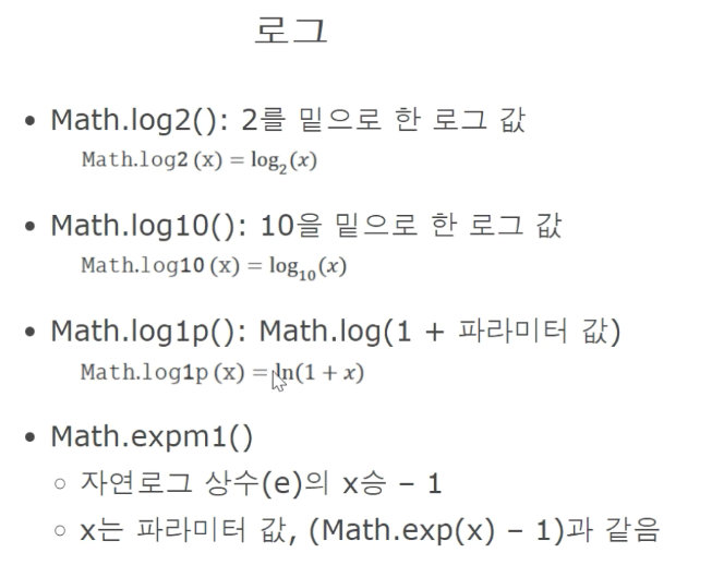 - Math.hypot() : 파라미터 2개를 받아 각각을 제곱해 더한 후 그 값의 제곱근을 구한다.