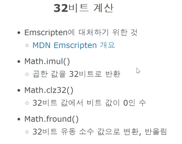 JS는 64비트라서 32비트와는 무관하지만 엠스크립튼에 대처하기 위해 32비트 계산법이 있다고 한다.