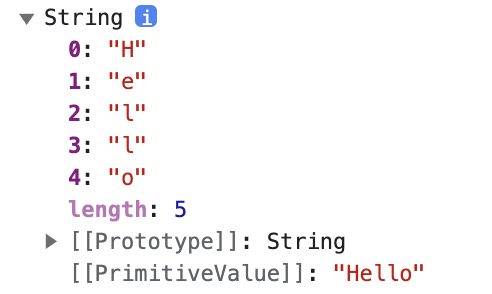 PrimitiveValue, 처음 선언했던 'Hello'가 원시 값으로 설정되었음을 알 수 있었다.