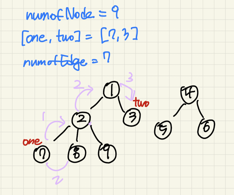 - queue에 처음 시작할 값을 넣는다. 이 때 탐색을 시작할 노드는 노드 1이 아니라 문제에서 구하려는 노드로, one이나 two를 기준으로 한다. (코드에서는 one을 기준으로 했다.)
