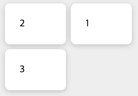 grid-auto-flow: row dense로 수정하면 아래 이미지처럼 카드 3의 오른쪽에 있던 카드 2가 빈 공간으로 밀집하게 된다.