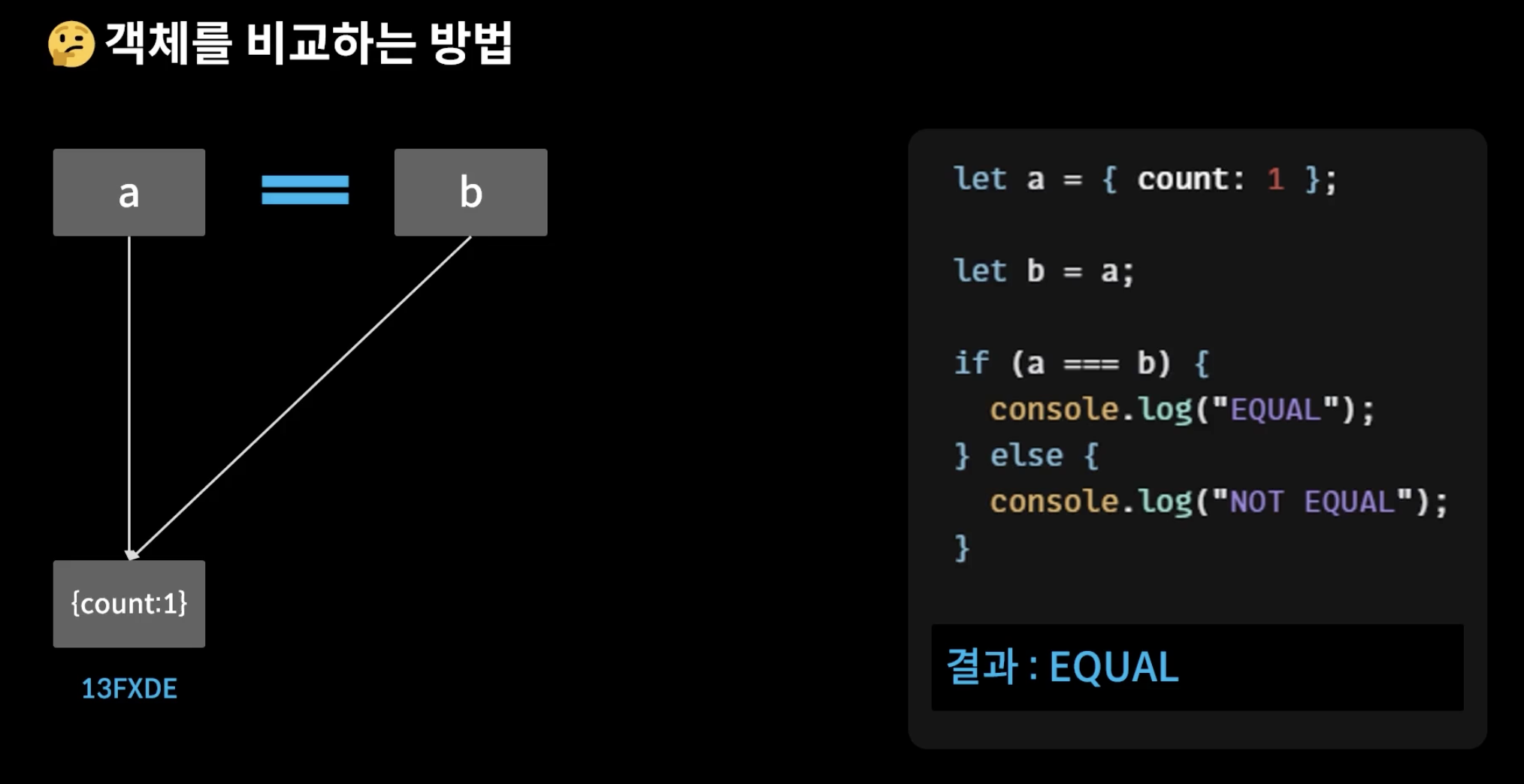 console.log(obj1 === obj2); // false