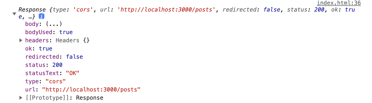 fetch로 받아오는 프로미스 객체인 response가 어떻게 생겼나 콘솔에 찍어봤다.