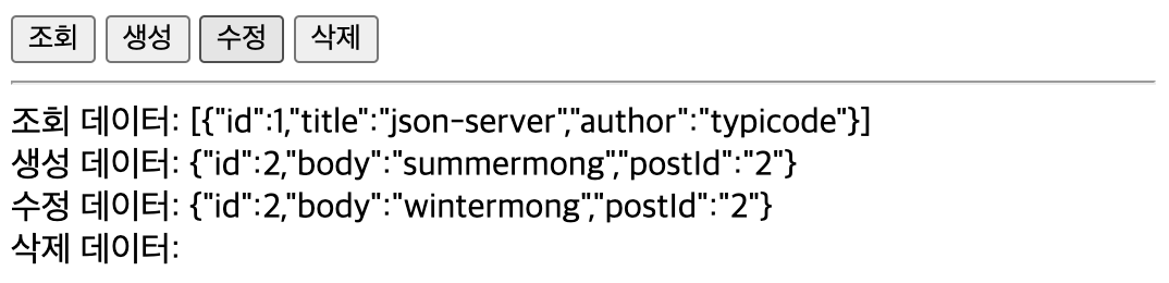 데이터가 별로 없고 get post put delete만 다뤄보려 한 거라서 일단은 이렇게 했다.