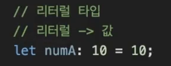- 리터럴은 값을 뜻한다. 따라서 리터럴 타입은 값이 타입이라는 뜻이다.