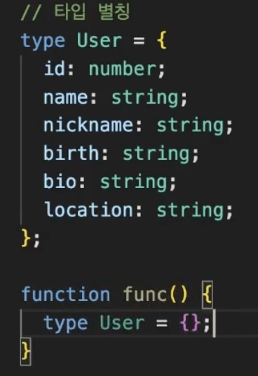 - 타입 별칭은 같은 스코프에서 중복되면 에러가 발생한다.