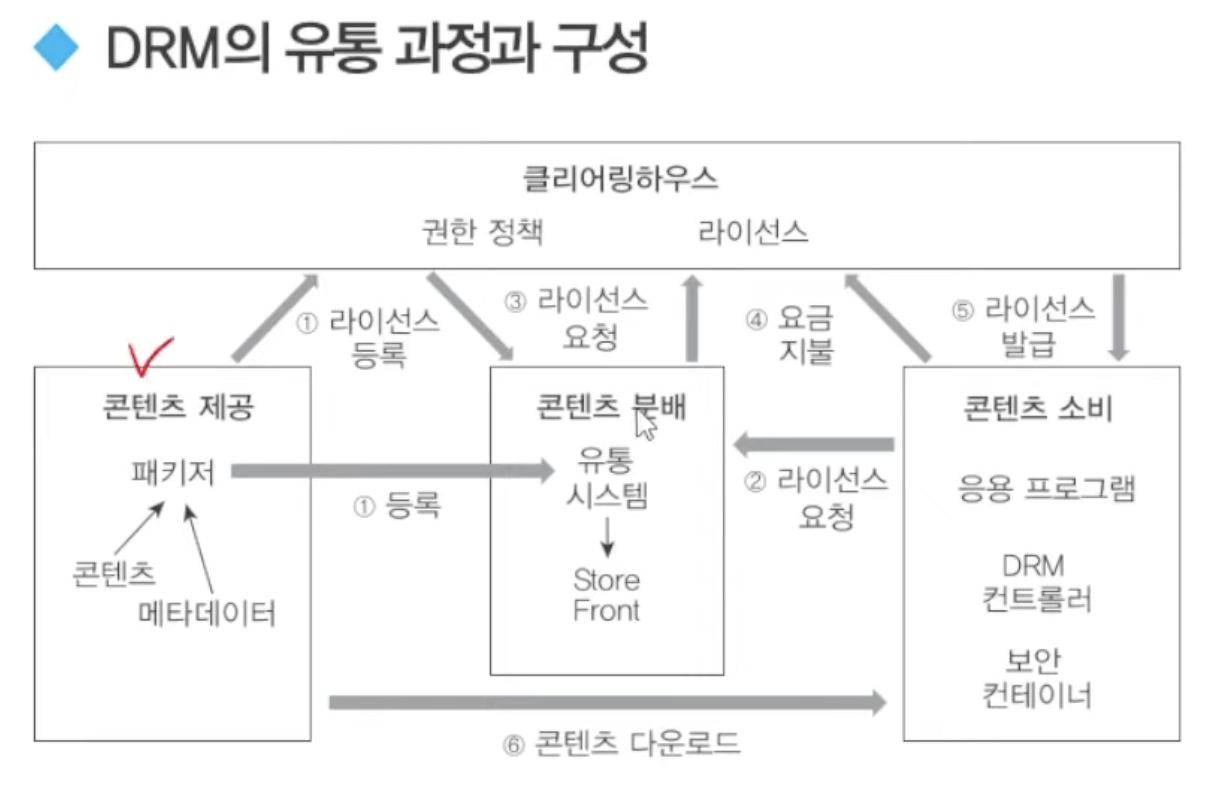 디지털 콘텐츠의 생성 ~ 유통 과정까지 안전하게 관리하고 허가된 유저만 사용하도록 제한하는 기술