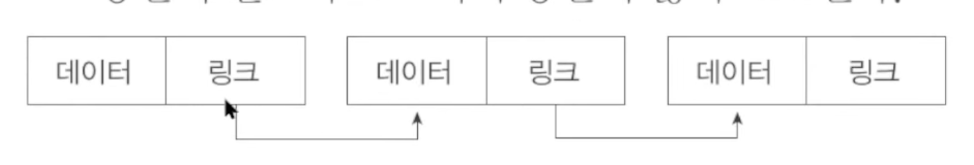 노드의 포인터 부분을 서로 연결 시킨 리스트로 연속적인 기억 공간이 없어도 저장 가능