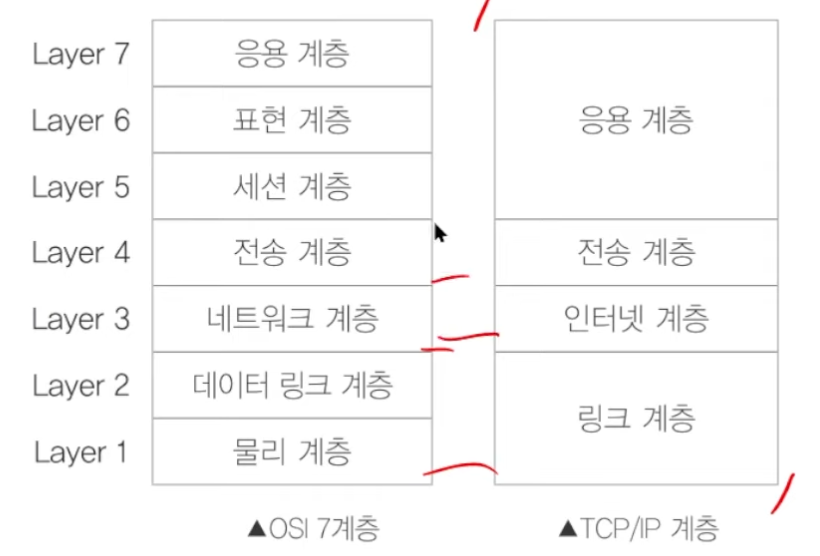 네트워크 계층: 통신망을 통해 패킷을 목적지까지 전달하는 계층 (ex. X.25, IP)
