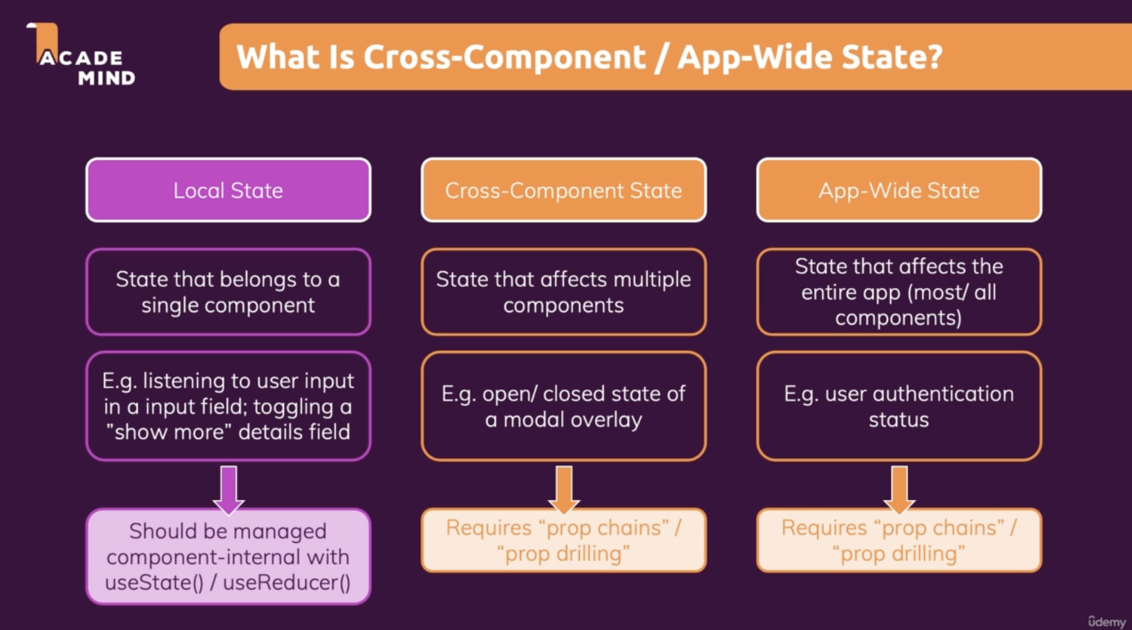 3. 전역 상태: 애플리케이션의 모든 컴포넌트에 영향을 미치는 상태(사용자 인증 같은)