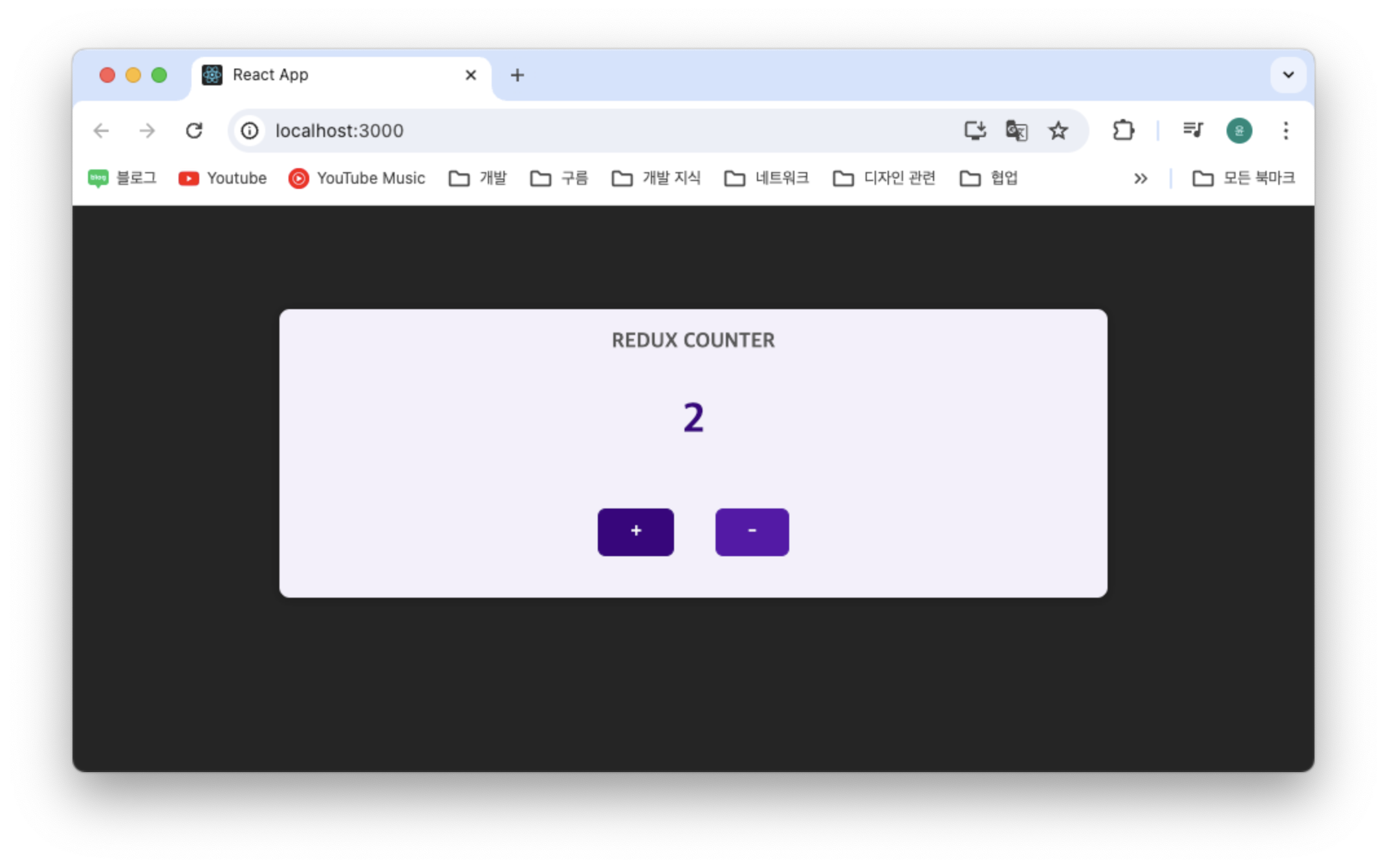 만들기 전에 먼저 yarn add(또는 npm i) redux react-redux로 라이브러리를 설치한다.