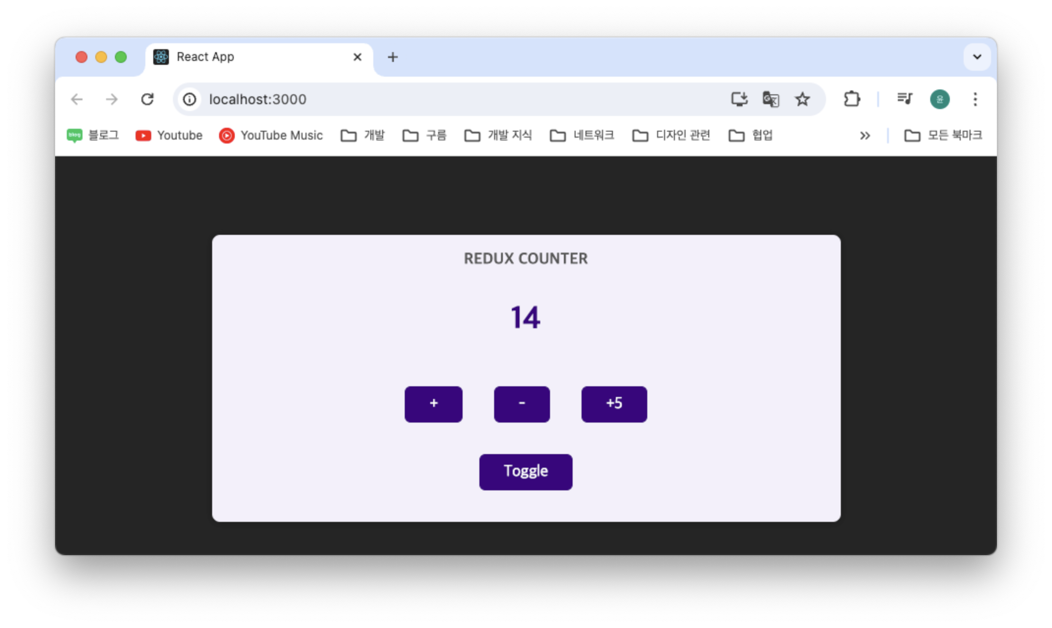 위와 같이 useSelector로 showCounter에 접근하고, action의 type이 toggle일 때 데이터가 변하도록 dispatch한다.