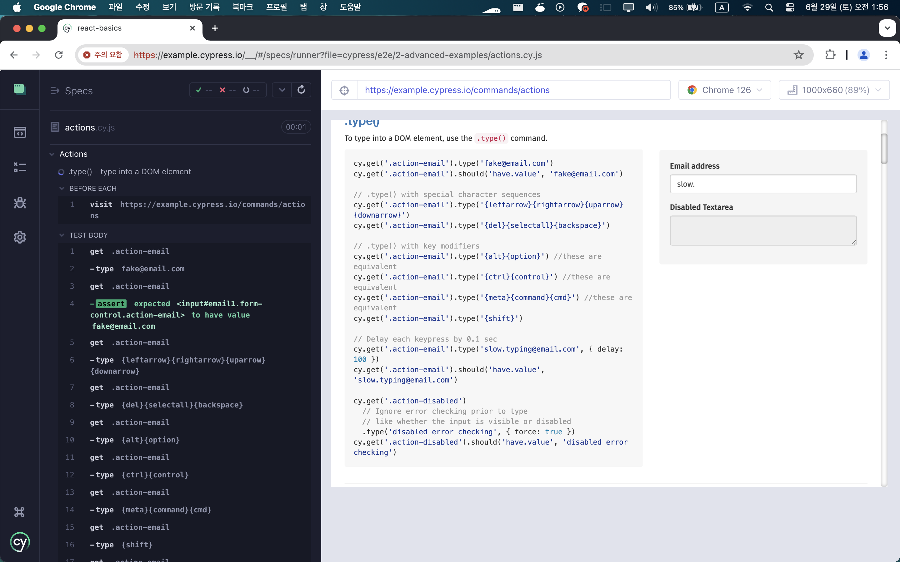 | cy.type(text) | 선택한 입력 요소에 텍스트를 입력 |