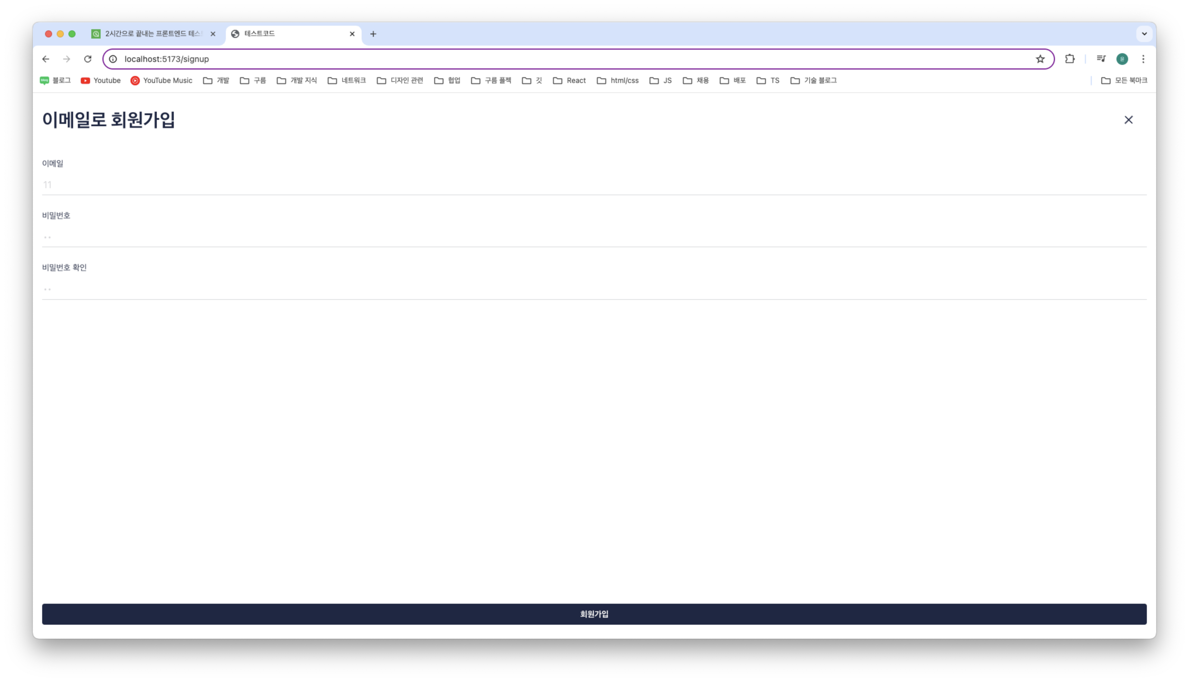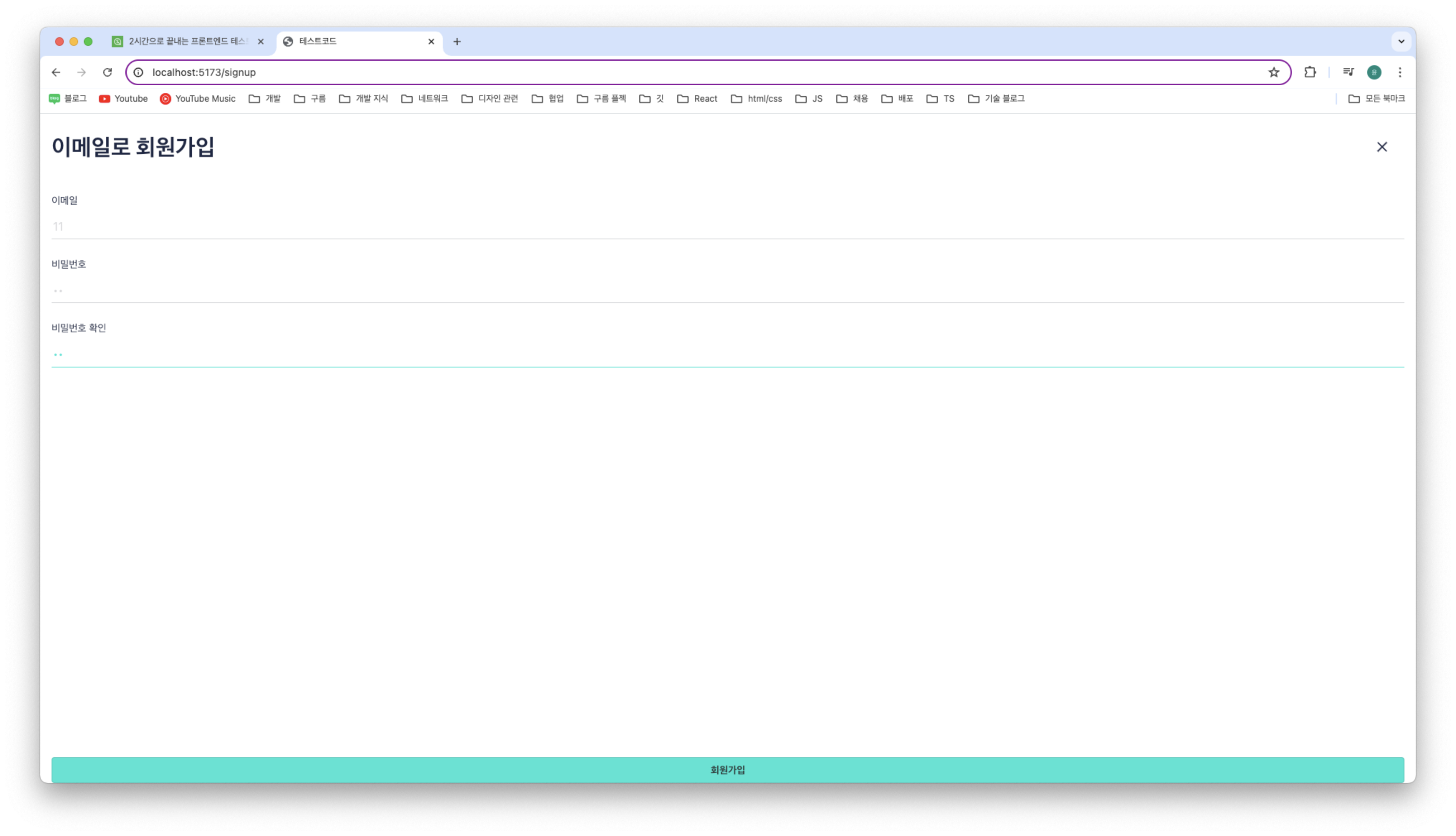 회원가입 페이지에 정확한 정보를 입력하면 비활성화 되어 있던 회원가입 버튼이 활성화 되게 하려고 한다.