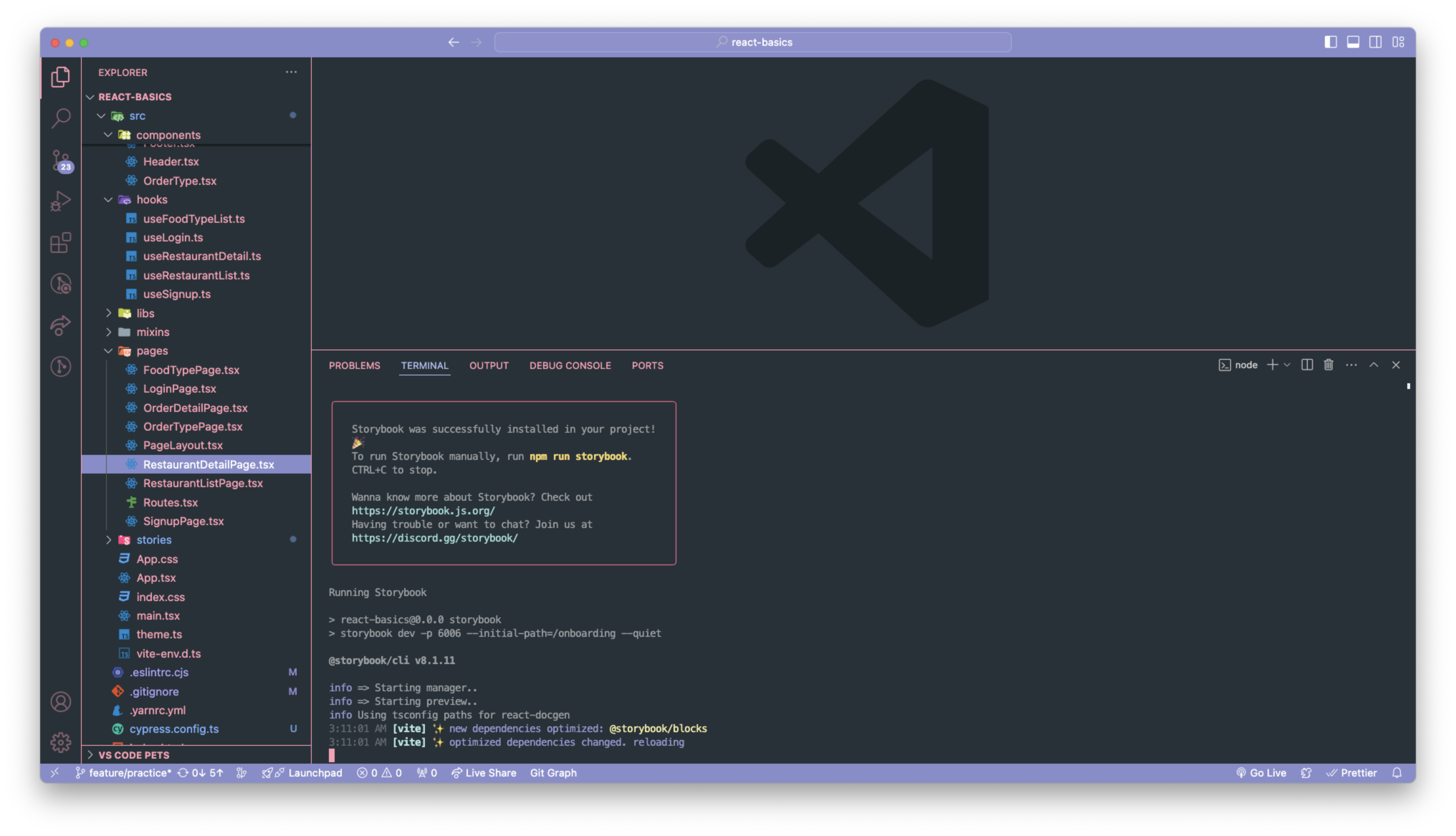 스토리북을 실행하려면 npm run storybook을 입력해달라고 한다.