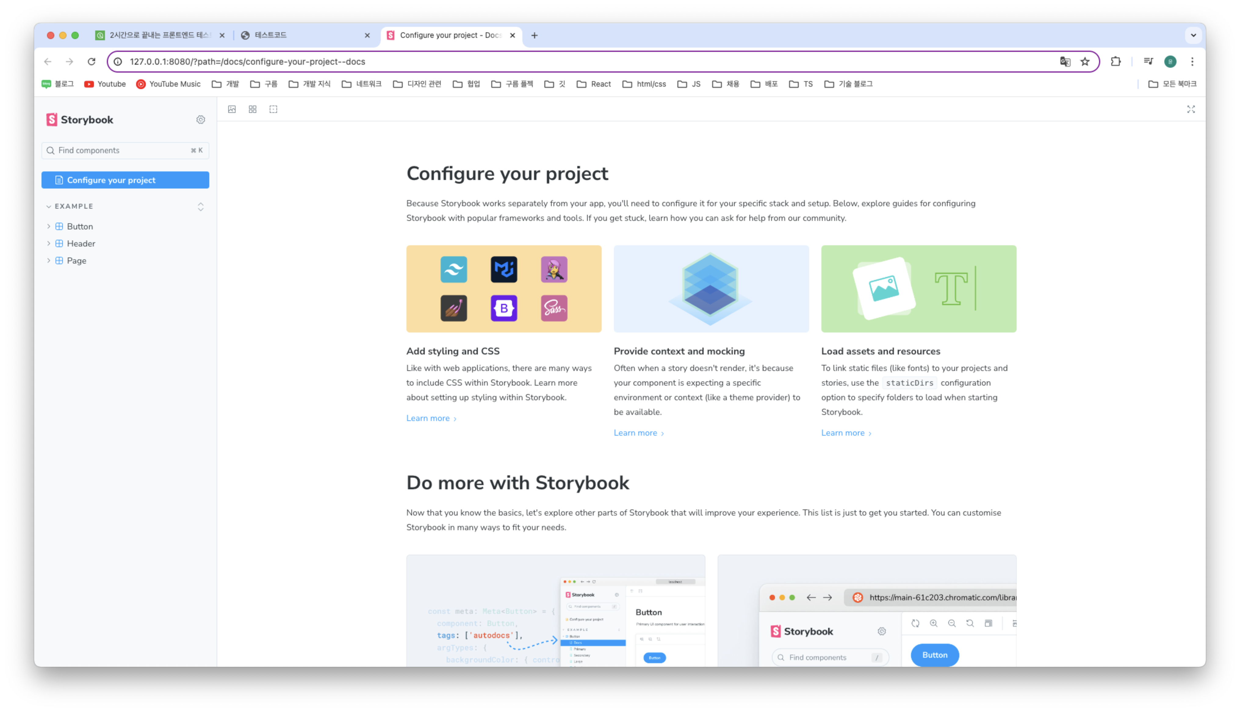 스토리북은 Button, Header, Page와 같이 예시를 준다.