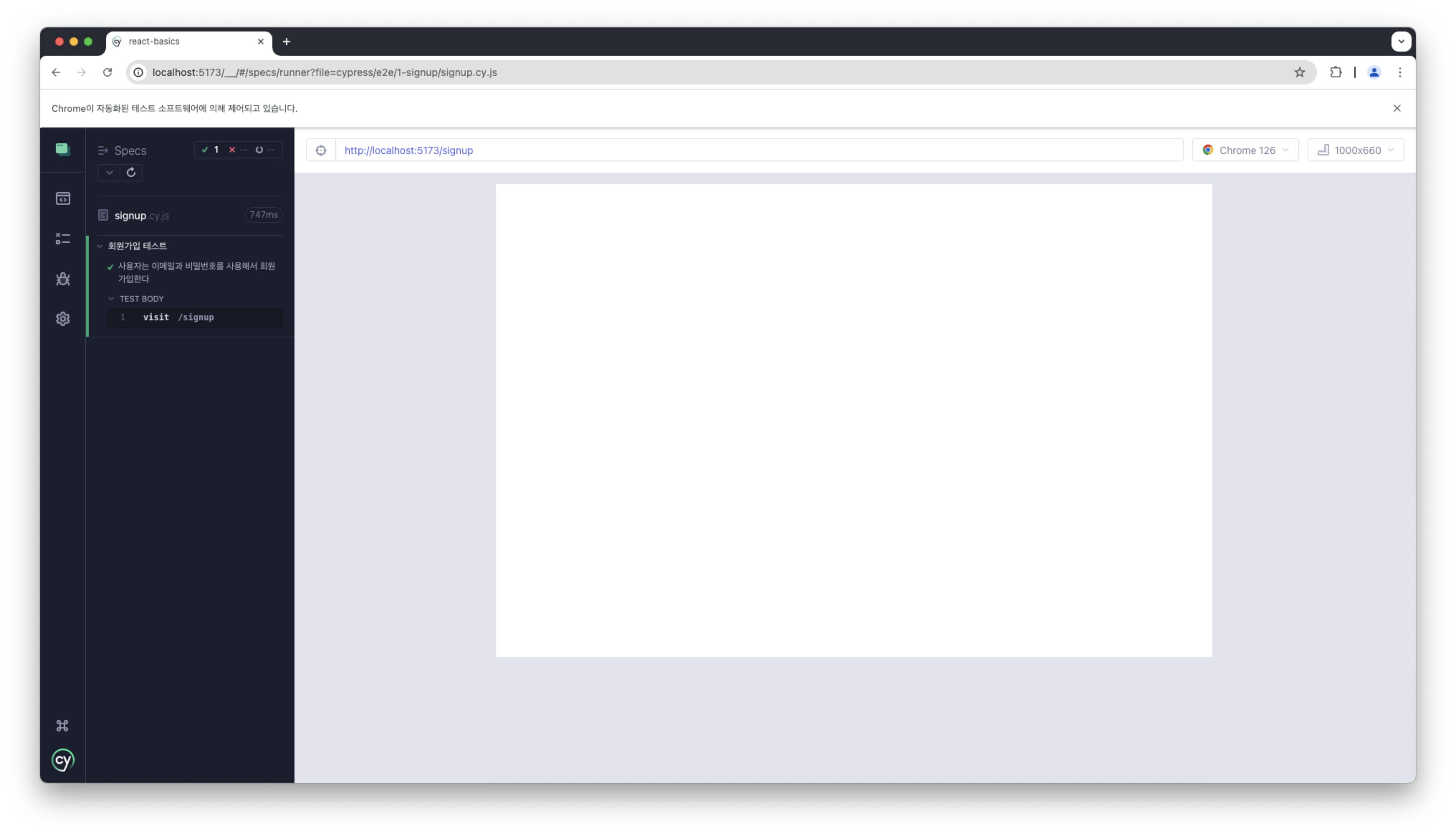 npm run ci, npm run cypress를 하면 cypress 화면이 뜬다.