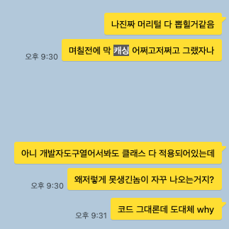 그리고 왜인진 모르겠지만 우리 팀원 모두(윈도우 유저 제외) 이상한 스타일링 캐싱; 현상으로 곤욕을 치뤘었다.