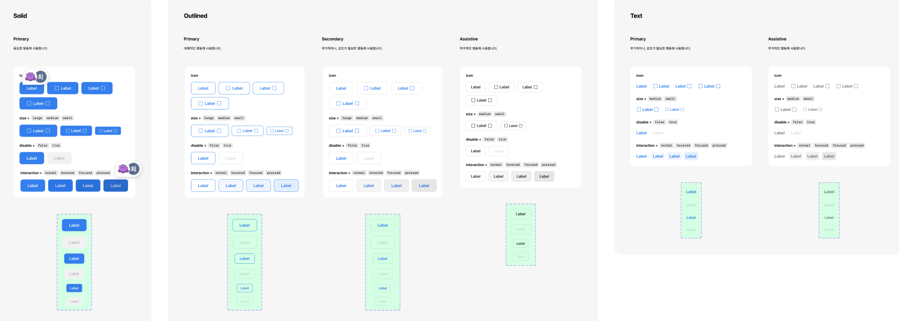 문서에 예시로 default와 Outlined, Text만 만들어두었습니다.