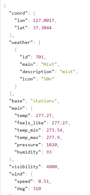 나의 position을 console에서 확인하고, lat, lon을 구한 후 저 날씨 사이트에서 시키는대로 값을 붙여준다.
